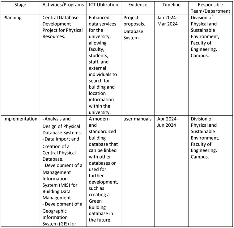 Planning, implementation, monitoring and/or evaluation of all programs related to Setting and Infrastructure through the utilization of Information and Communication Technology